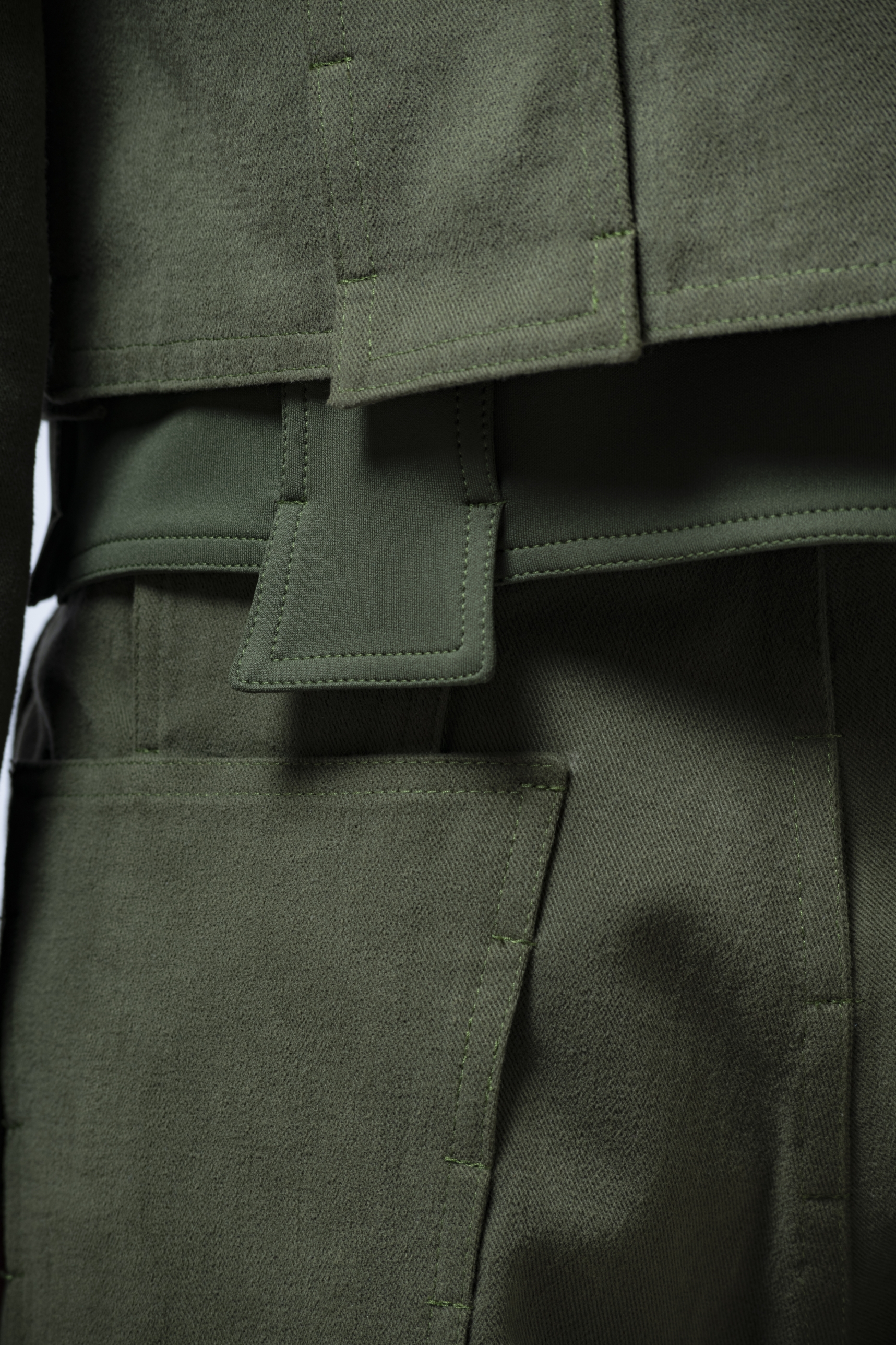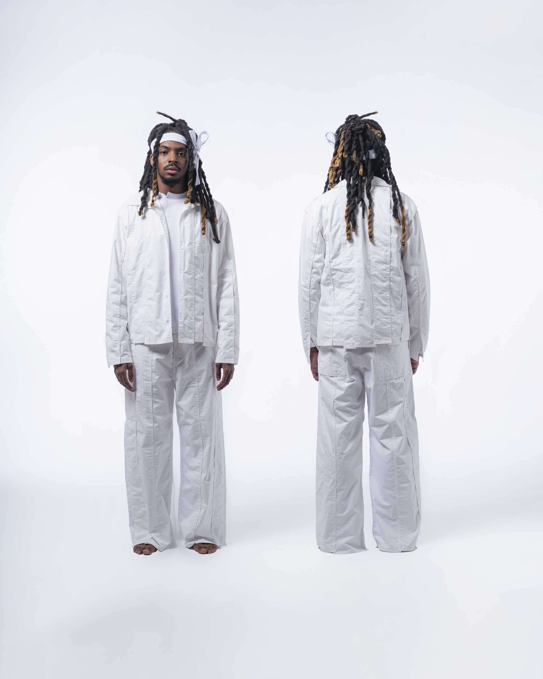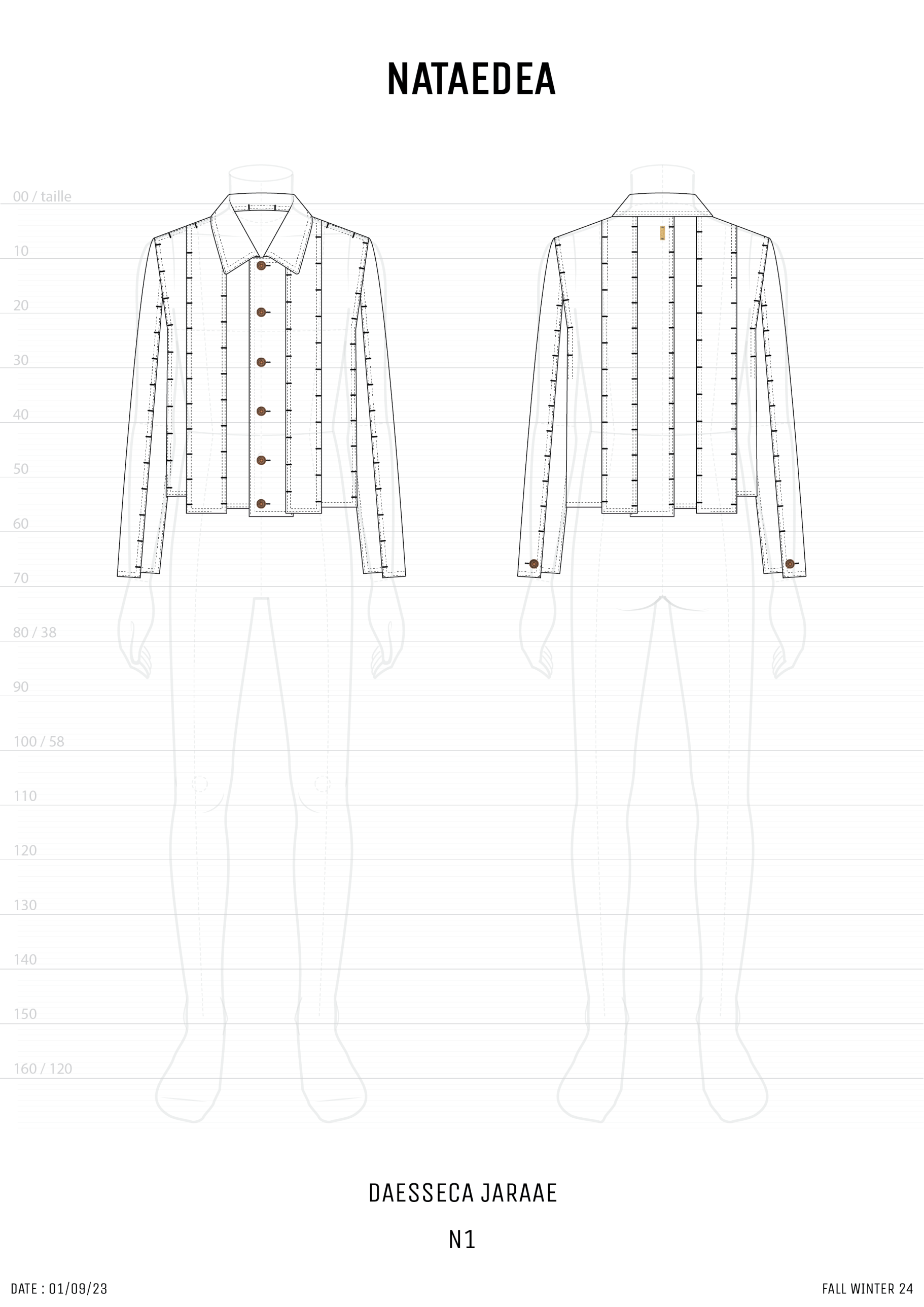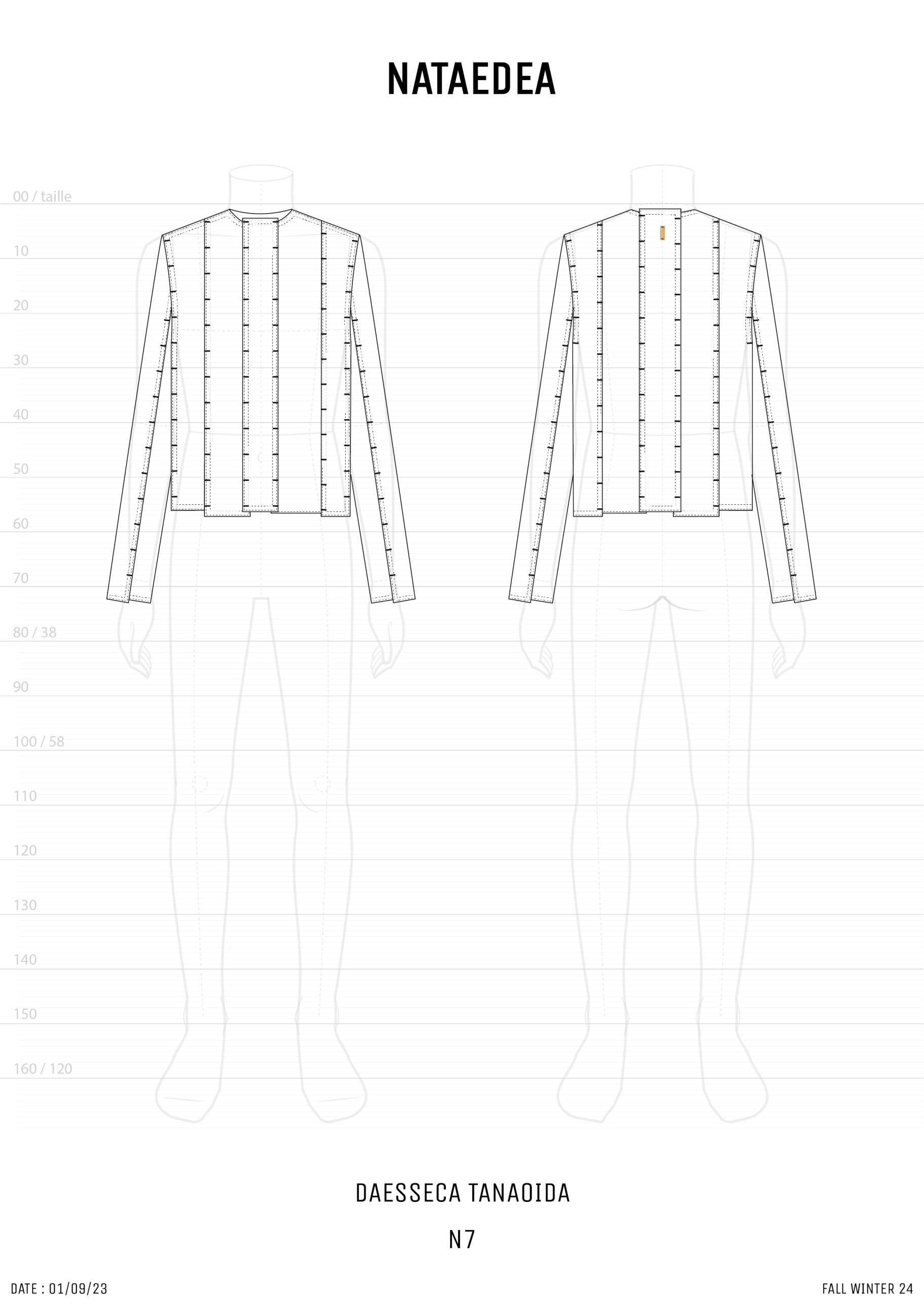 -DAESSECA- (DISSECTION) COLLECTION EXPOSES THE BODY AND NATURE OF A GARMENT THROUGH THE USE OF ASYMMETRICAL VERTICALLY CUT FABRIC STRIPES, INDIVIDUALLY CREATED, AND REASSEMBLED BY SUPERPOSITION. THE COLLECTION TAKES INSPIRATION FROM THE DISSECTION OF BEINGS AND HOW, INDIVIDUAL PARTS (PATTERN/ORGANS), MEANINGLESS ON THEIR OWN, BECOME PART OF A COMPLETE BODY (GARMENT/BEING) ONCE ASSEMBLED.