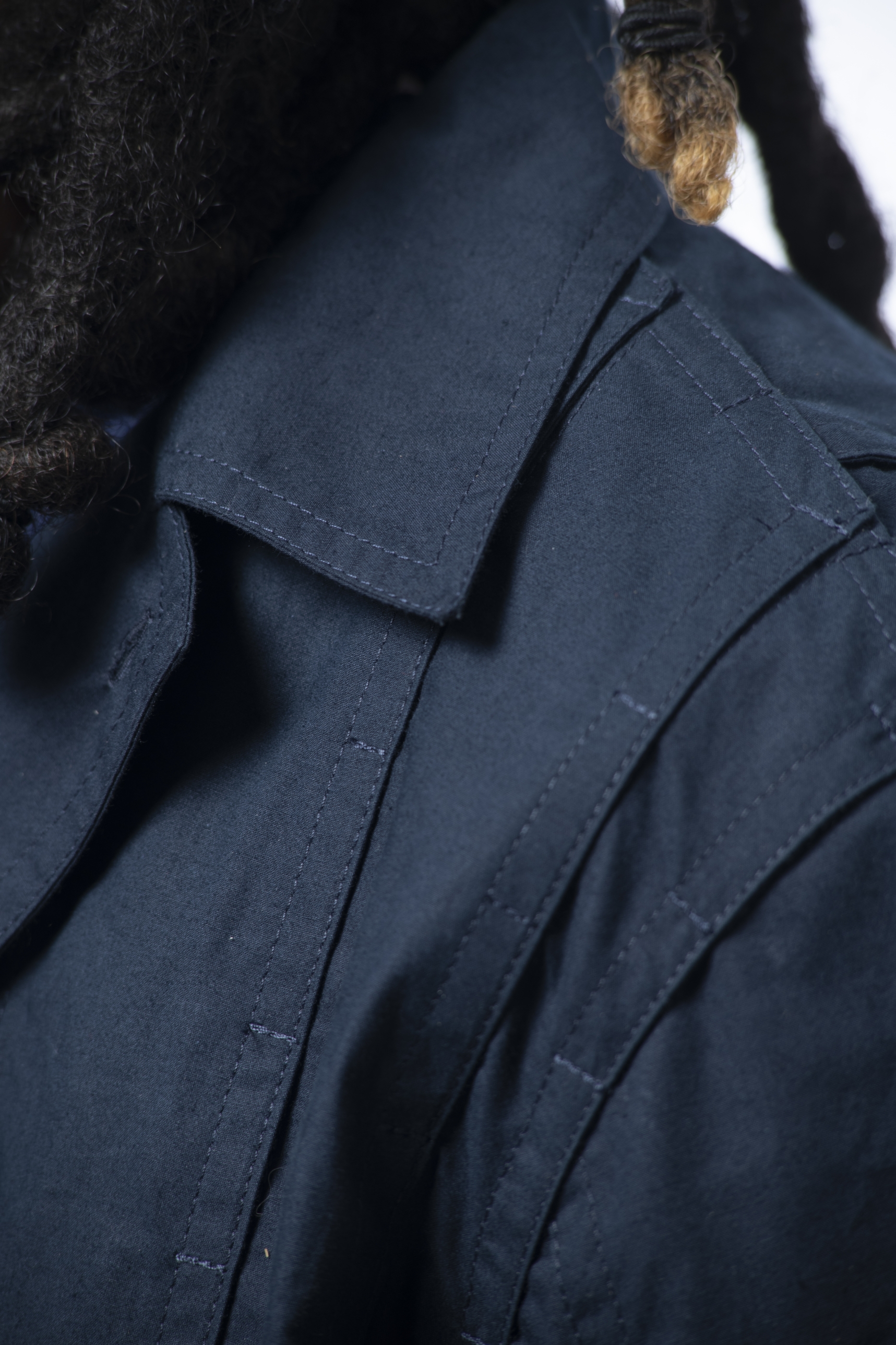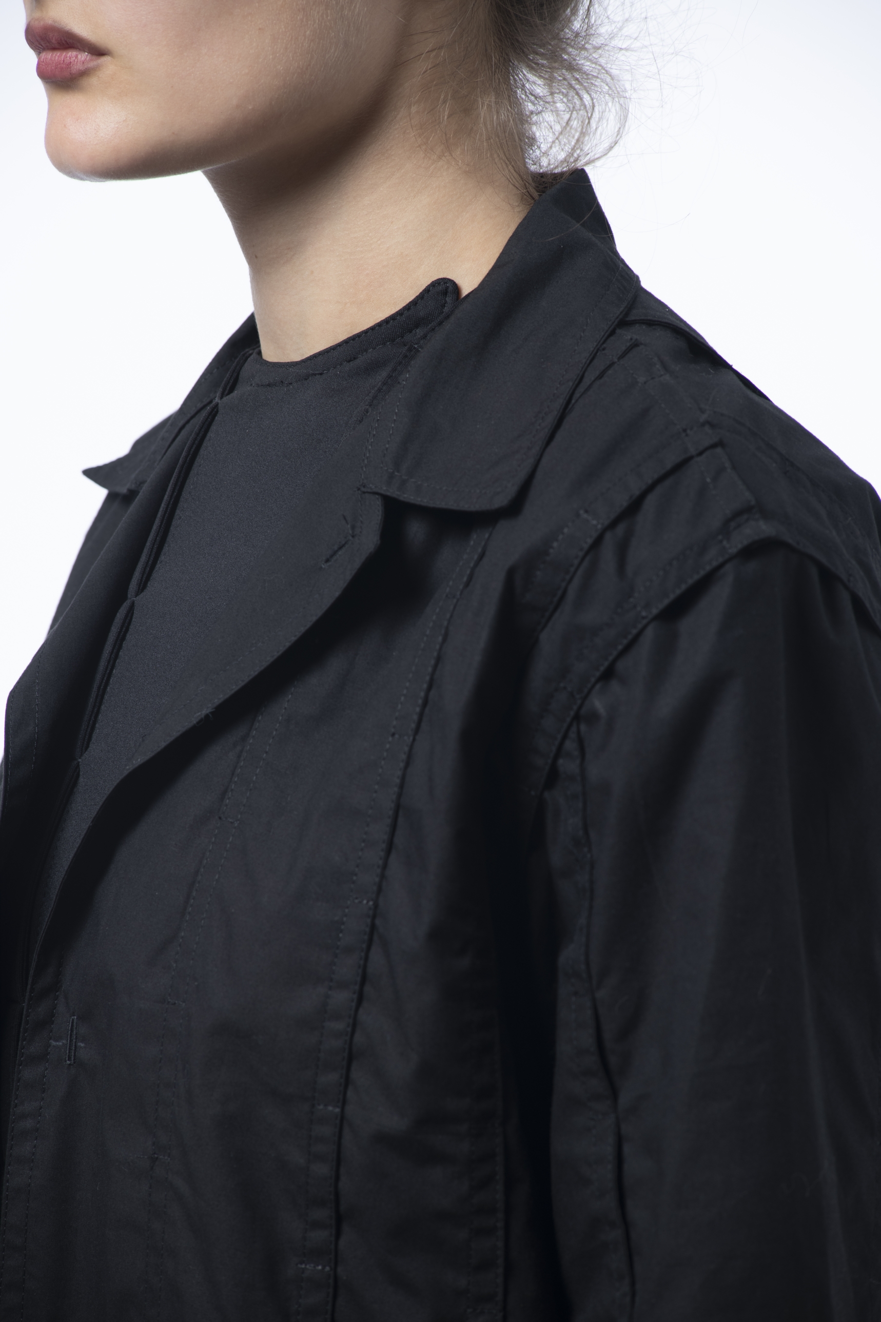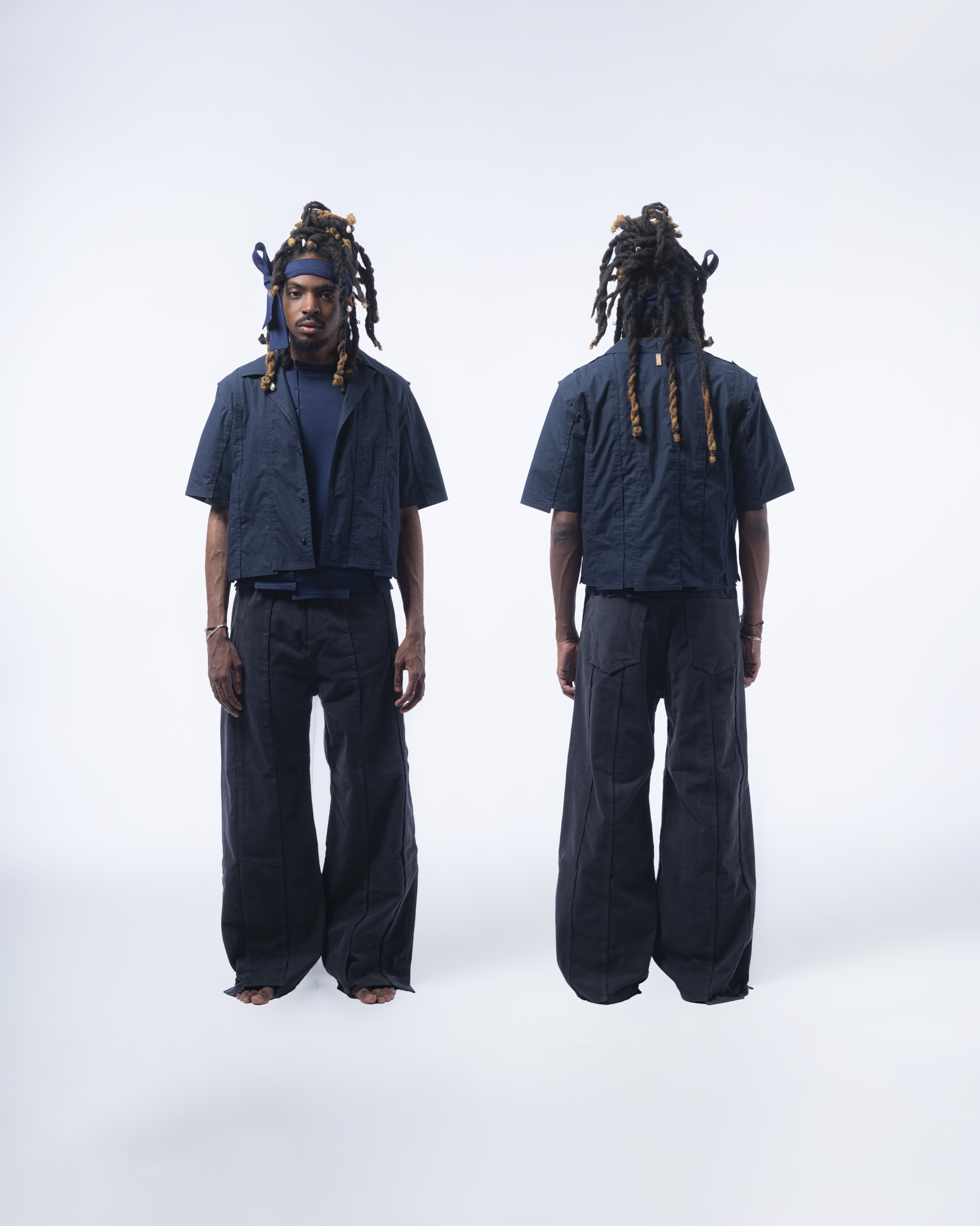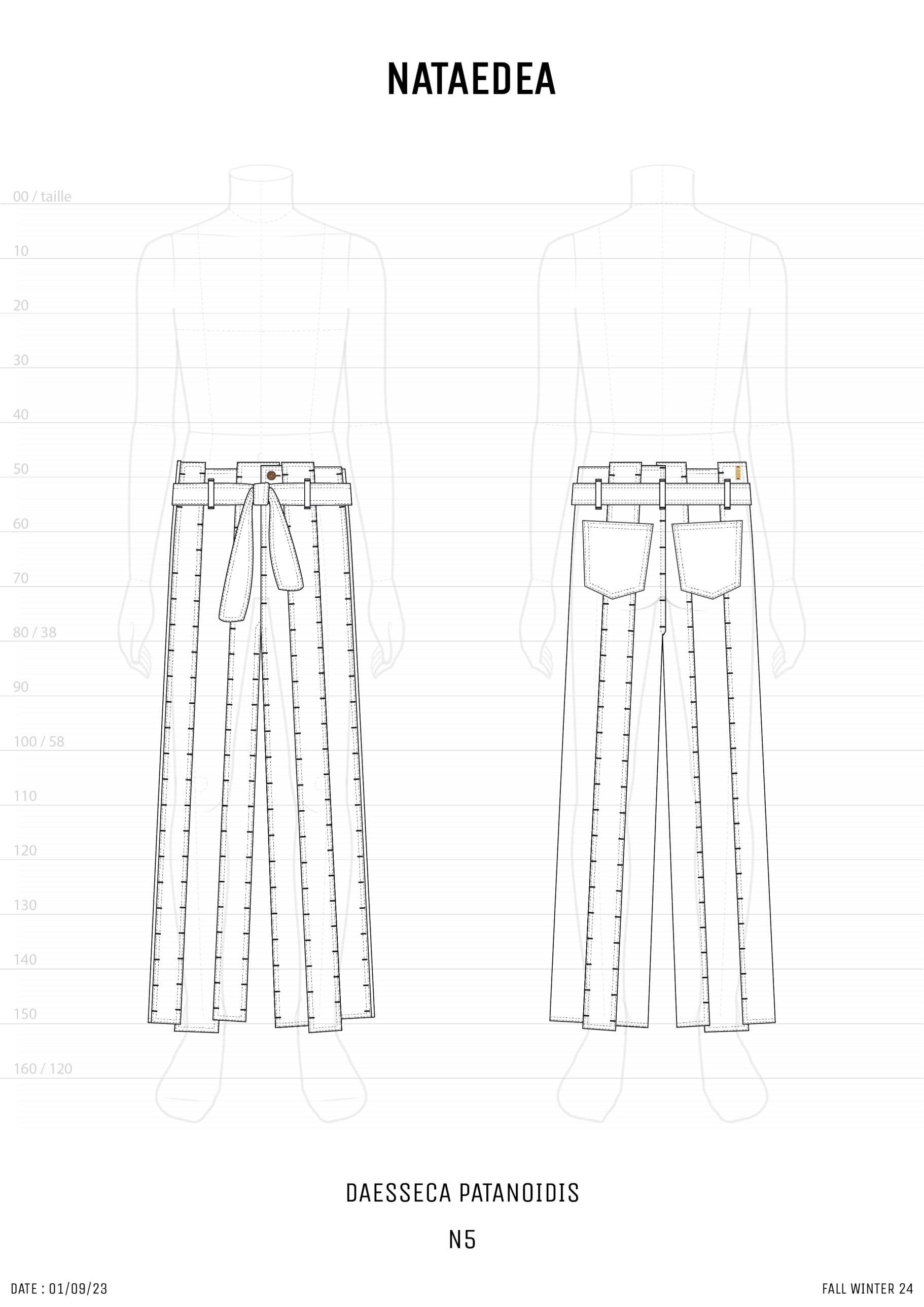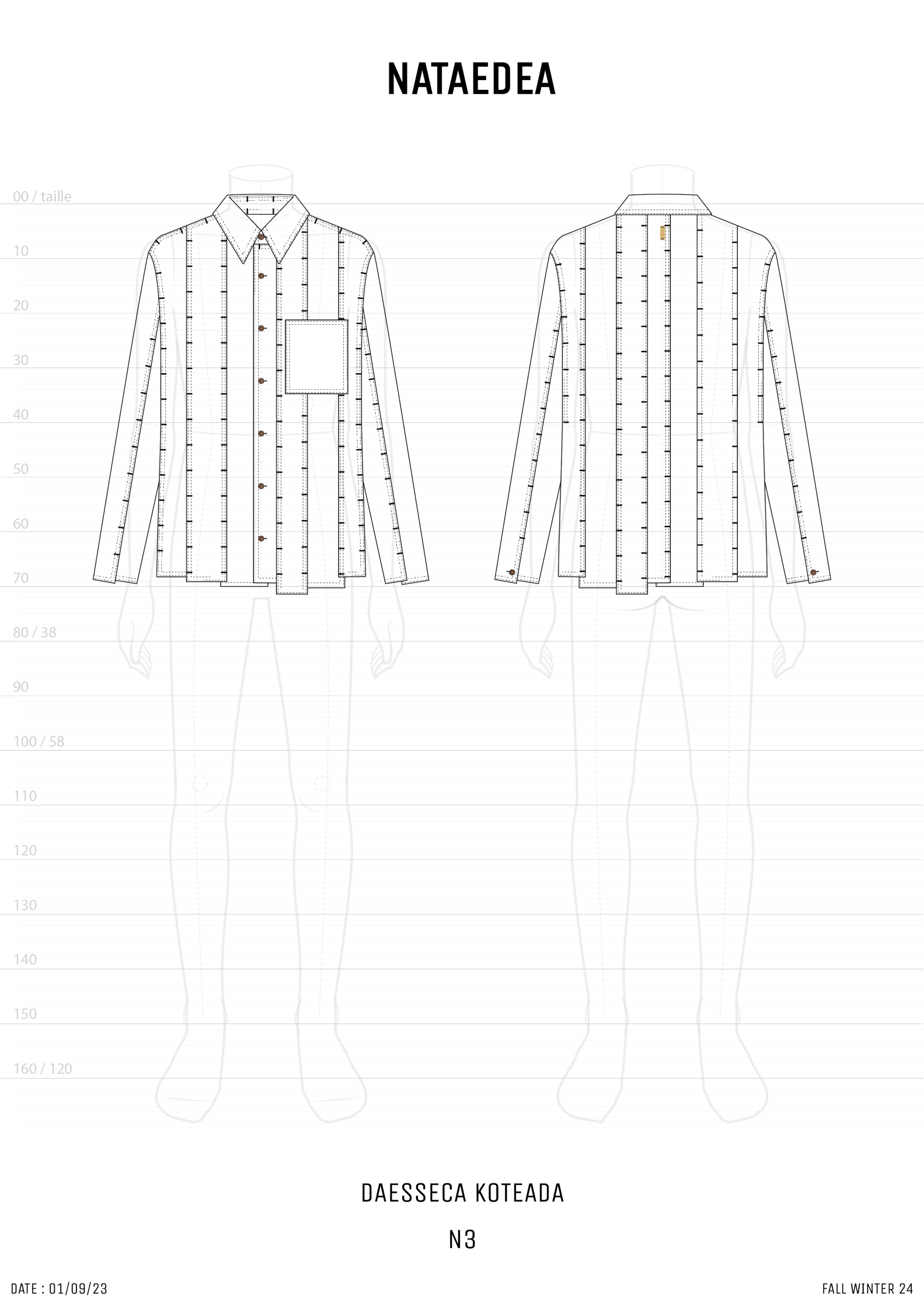 -DAESSECA- (DISSECTION) COLLECTION EXPOSES THE BODY AND NATURE OF A GARMENT THROUGH THE USE OF ASYMMETRICAL VERTICALLY CUT FABRIC STRIPES, INDIVIDUALLY CREATED, AND REASSEMBLED BY SUPERPOSITION. THE COLLECTION TAKES INSPIRATION FROM THE DISSECTION OF BEINGS AND HOW, INDIVIDUAL PARTS (PATTERN/ORGANS), MEANINGLESS ON THEIR OWN, BECOME PART OF A COMPLETE BODY (GARMENT/BEING) ONCE ASSEMBLED.
