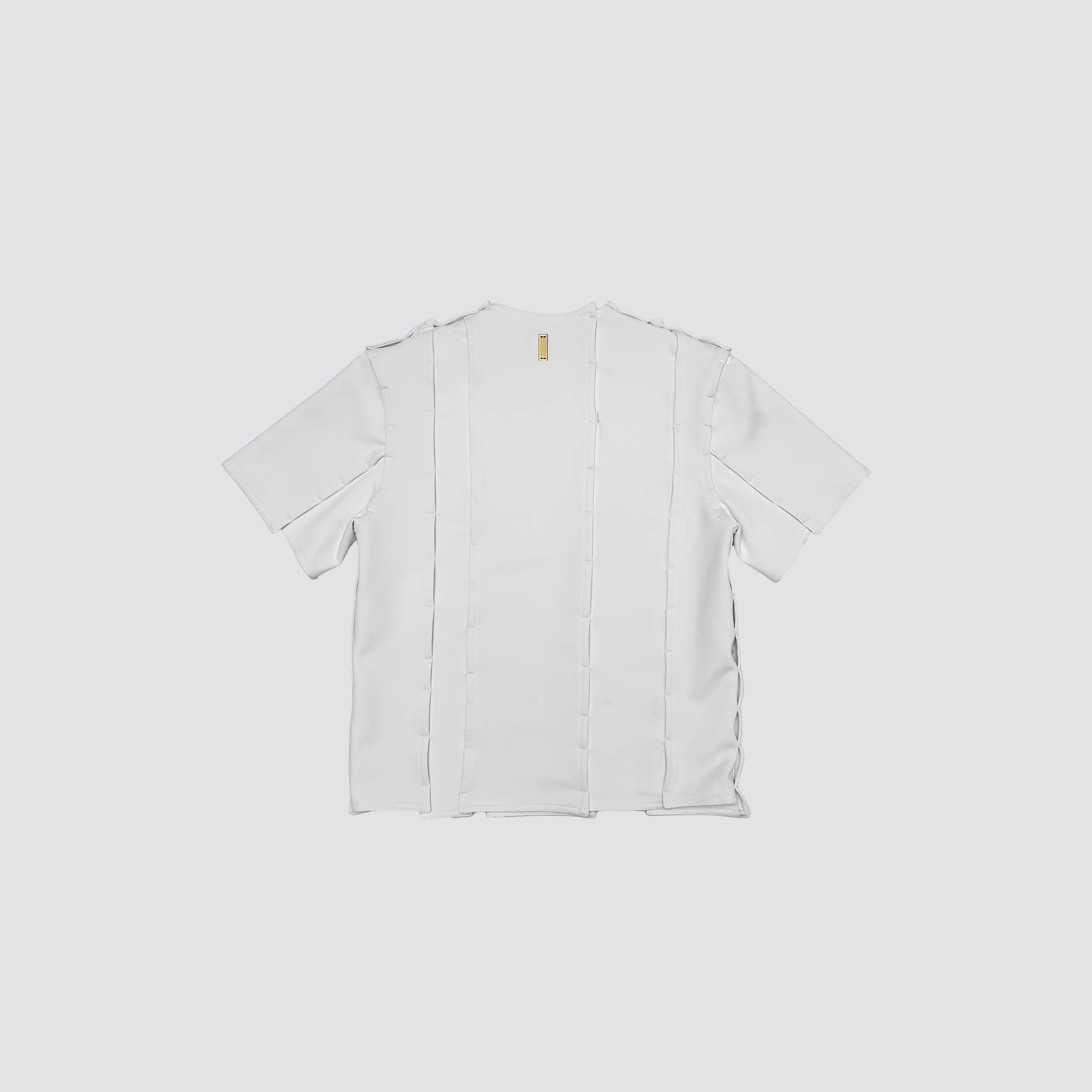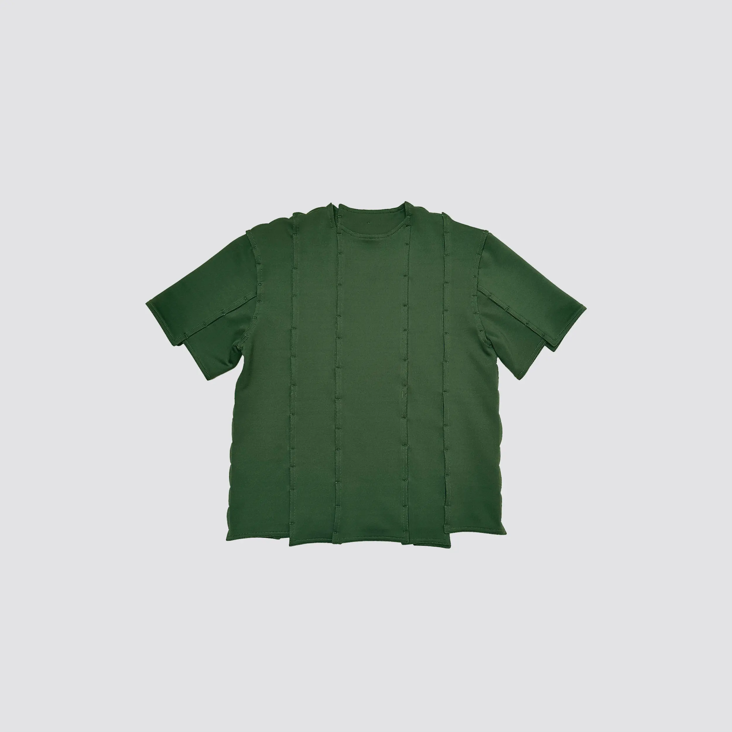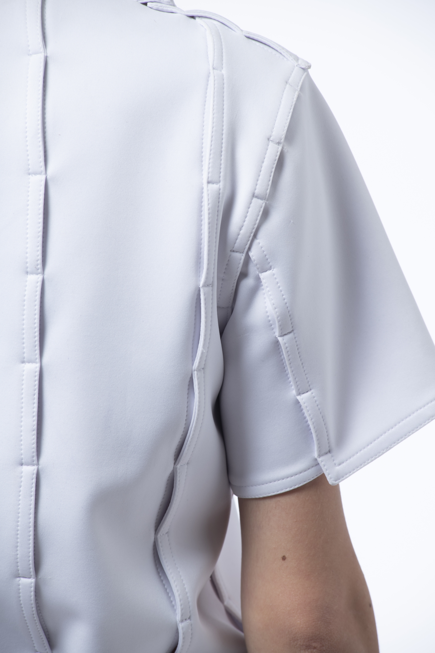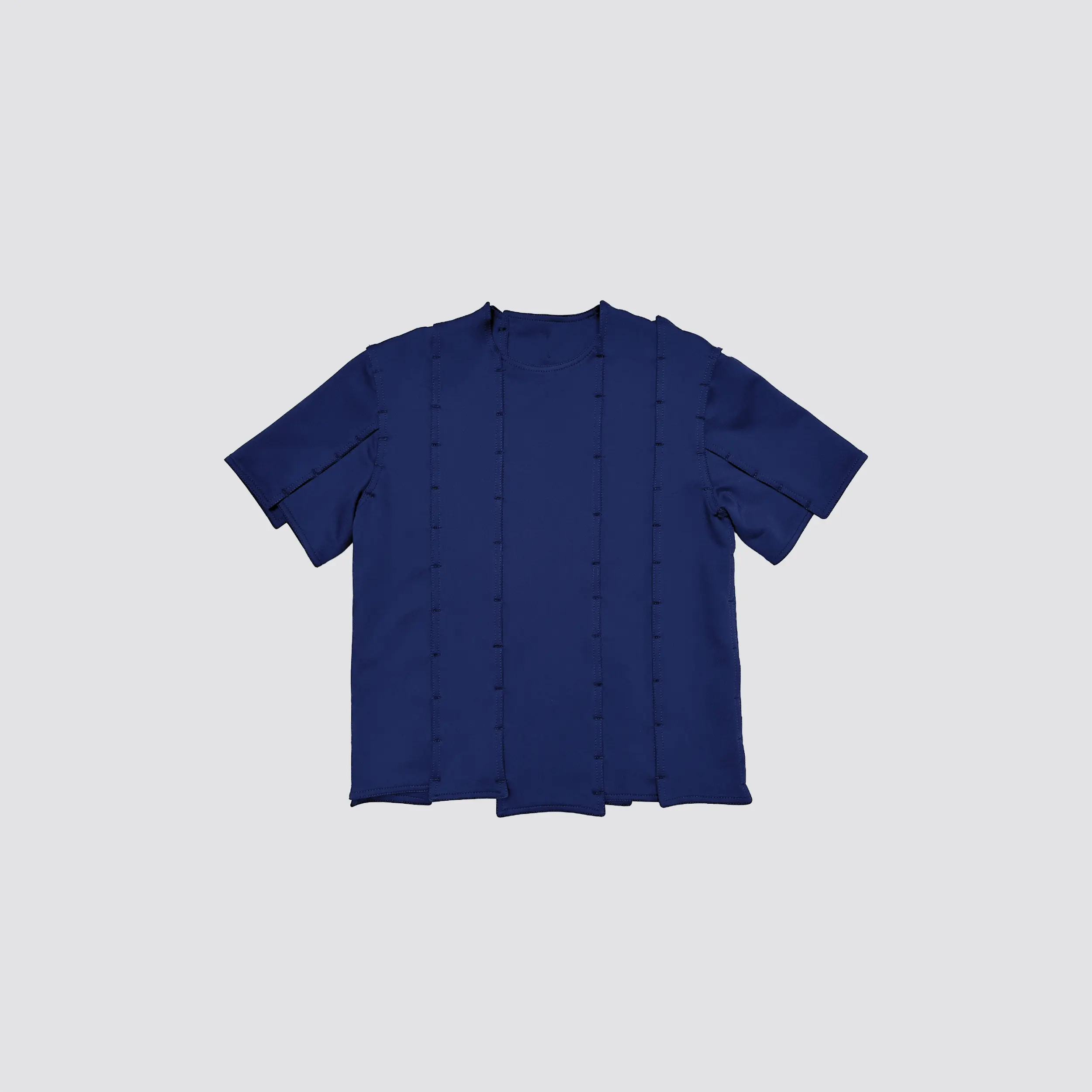 -DAESSECA- (DISSECTION) COLLECTION EXPOSES THE BODY AND NATURE OF A GARMENT THROUGH THE USE OF ASYMMETRICAL VERTICALLY CUT FABRIC STRIPES, INDIVIDUALLY CREATED, AND REASSEMBLED BY SUPERPOSITION. THE COLLECTION TAKES INSPIRATION FROM THE DISSECTION OF BEINGS AND HOW, INDIVIDUAL PARTS (PATTERN/ORGANS), MEANINGLESS ON THEIR OWN, BECOME PART OF A COMPLETE BODY (GARMENT/BEING) ONCE ASSEMBLED.